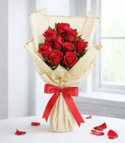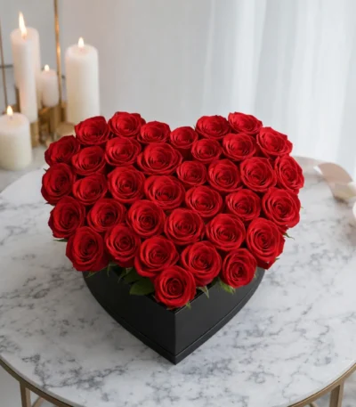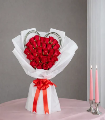 “Heartbeat Proposal” “A grand, heart-shaped masterpiece of deep red roses wrapped in elegant white. Designed for the most important ‘Yes’ of your life, this bouquet captures the rhythm of true love. It’s not just a gift; it’s a heartbeat you can hold.