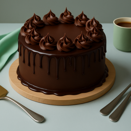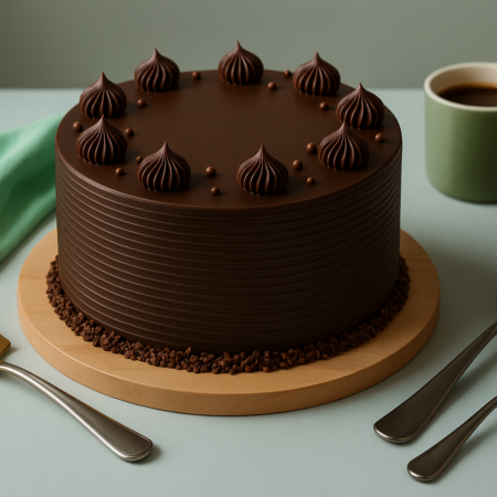 Elegantly designed with vintage charm, this cake offers deep chocolate layers and creamy frosting.